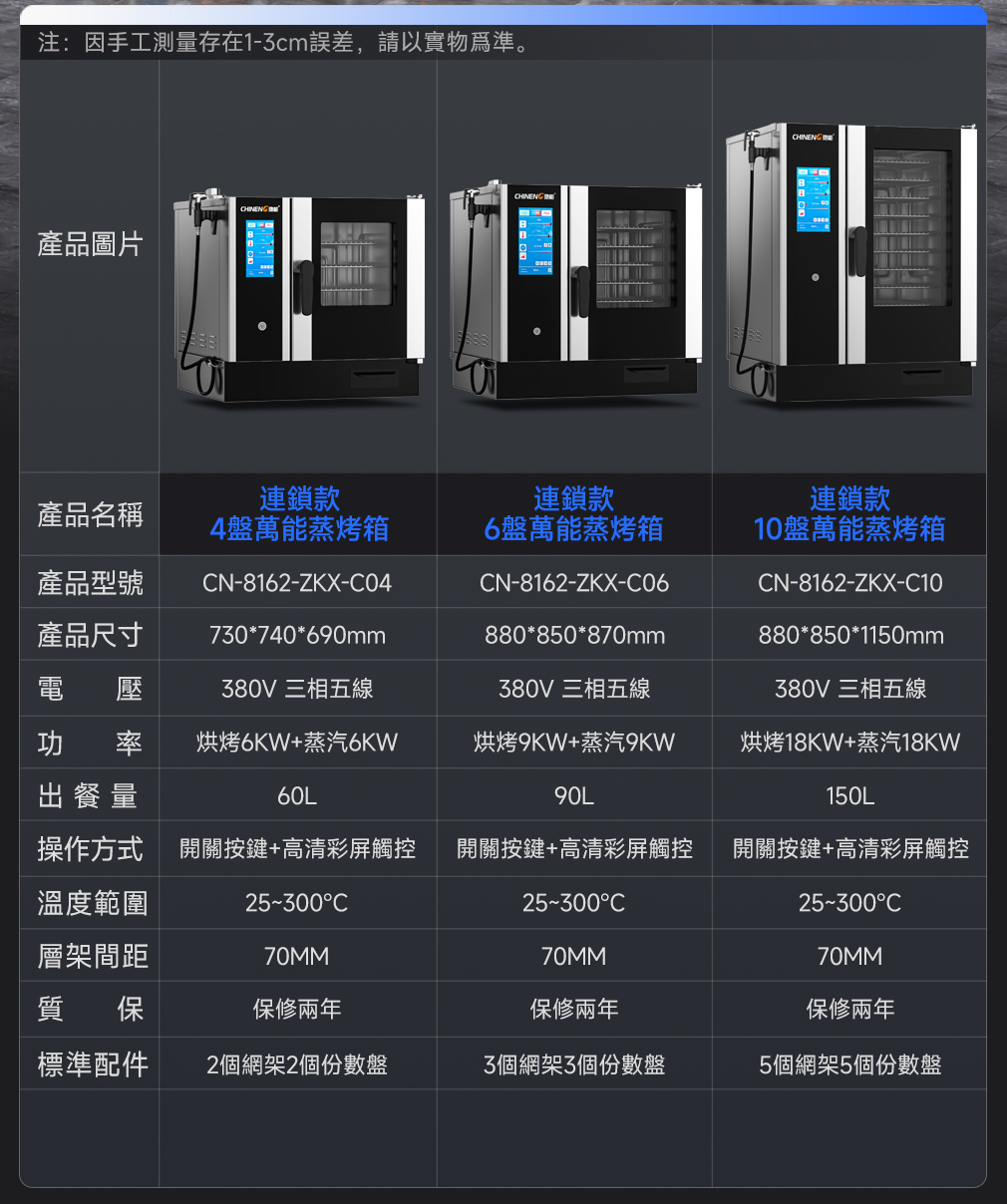 大容量設計:馳能萬能蒸烤箱擁有大容量設計,如90L的容量,適合連鎖餐廳、酒店、學校食堂、飯店等場所使用。