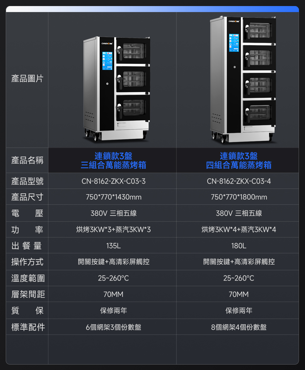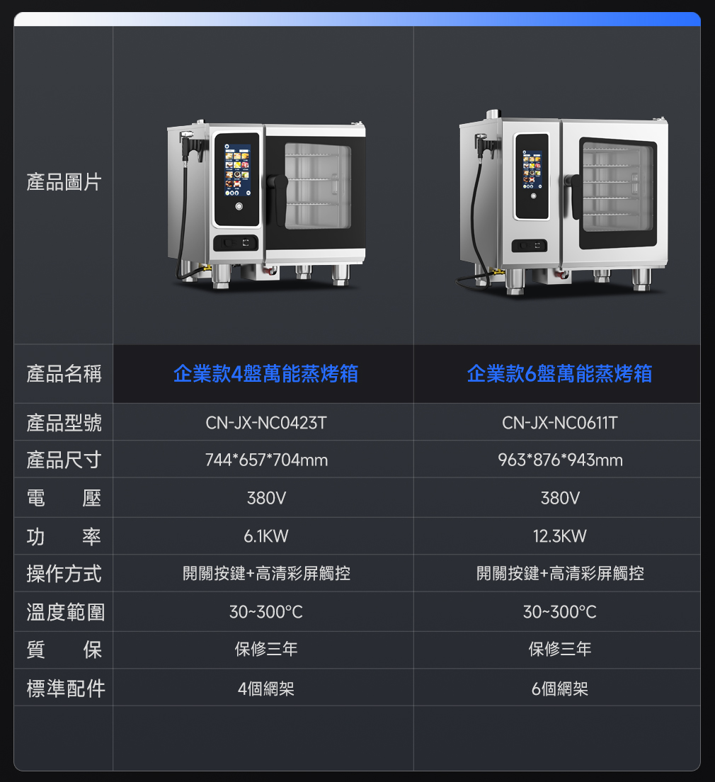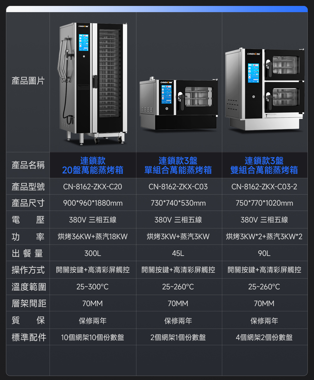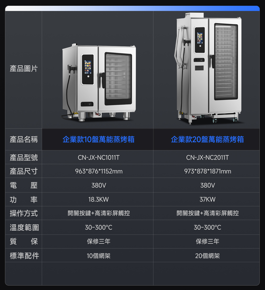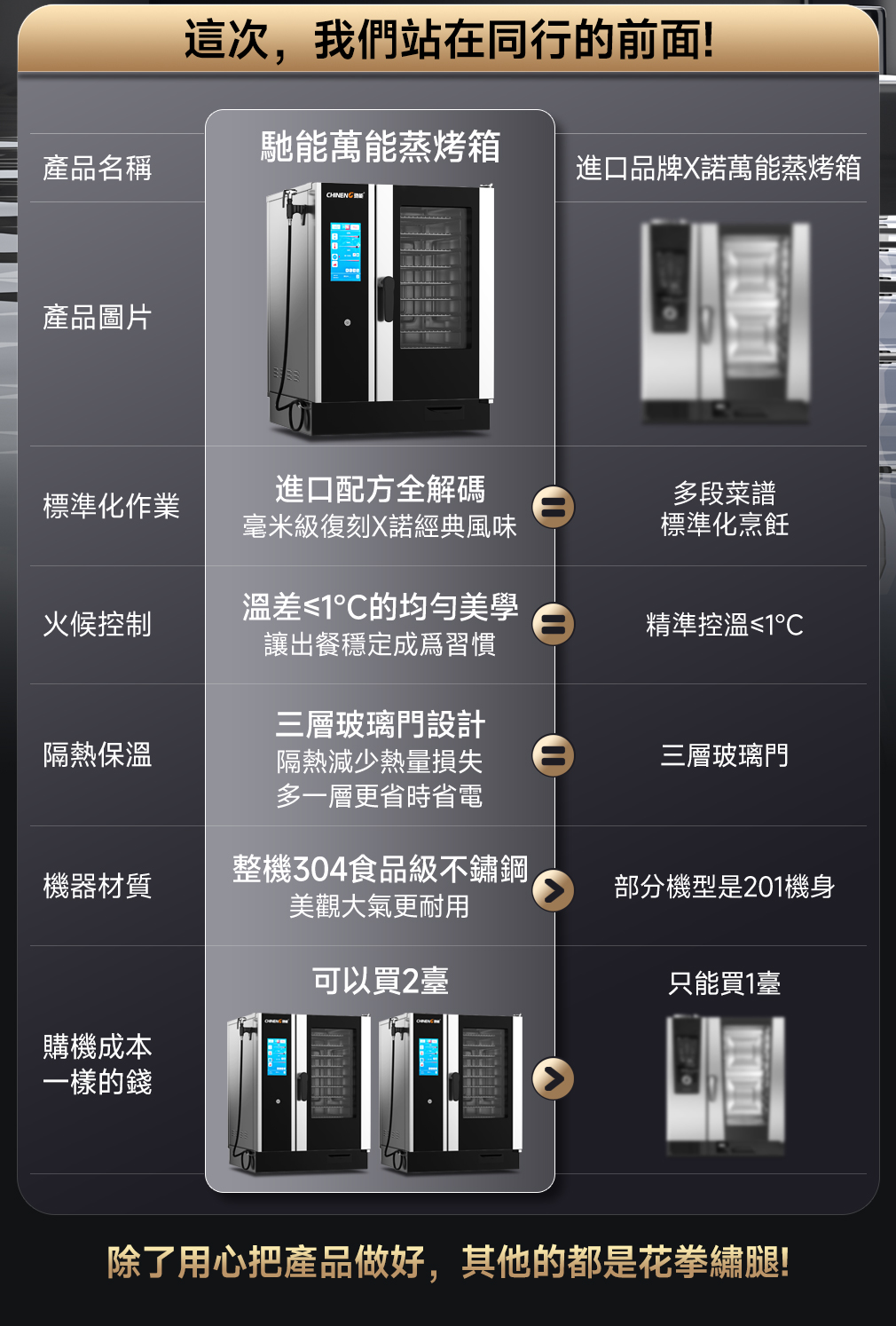高效節能:與傳統設備相比,馳能萬能蒸烤箱能節省高達60%的能源,烹制食物時也無油煙,非常環保。