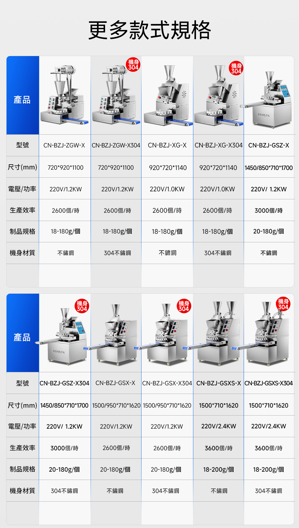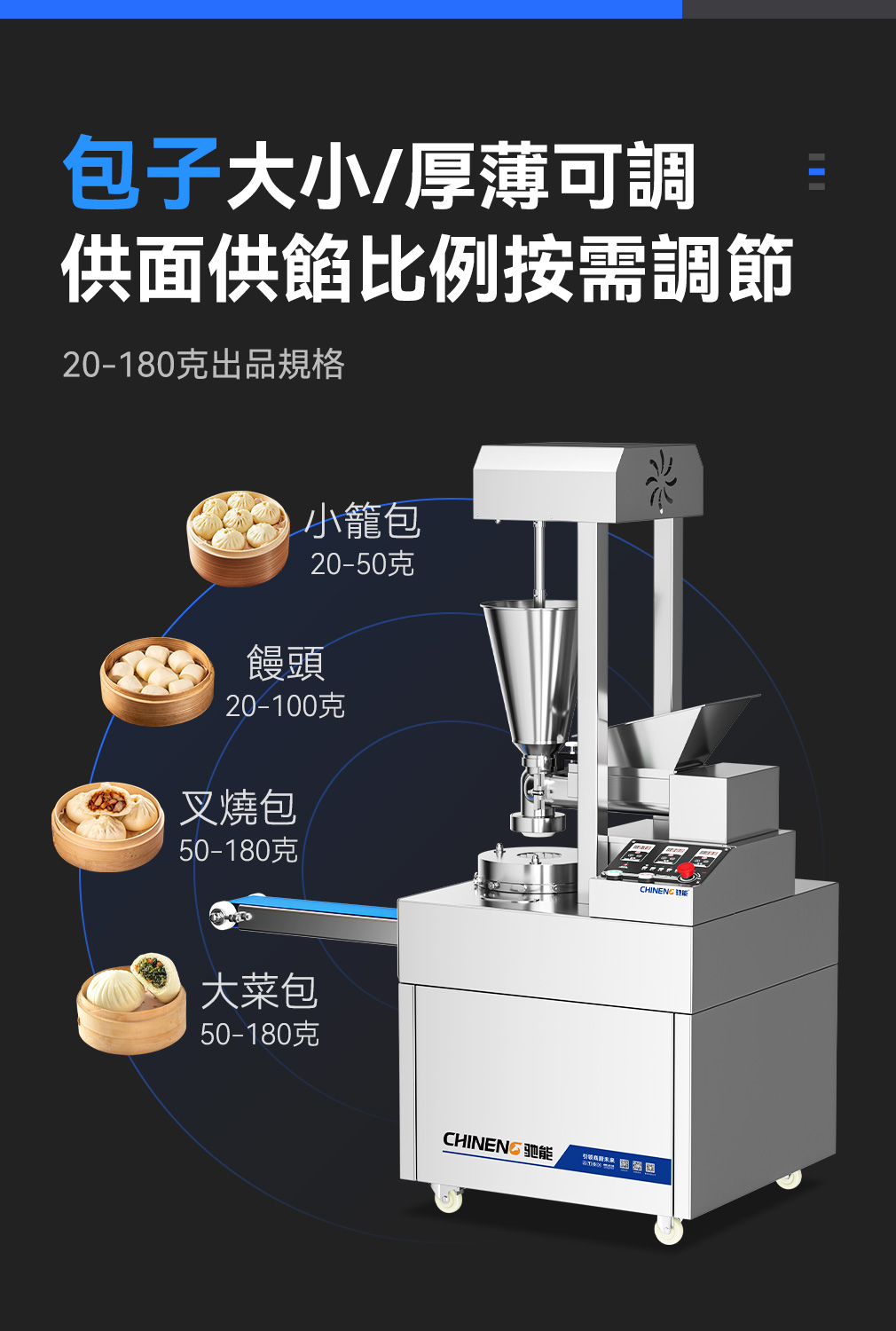 馳能包子機專爲包子店、酒店、學校、部隊、事業單位、工廠等餐飲食堂設計,旨在提高包子生產效率,節約人力成本。該機器採用不鏽鋼機身和純銅電機,確保耐用性和穩定性。同時,馳能包子機還支持定制,滿足不同客戶的特殊需求。