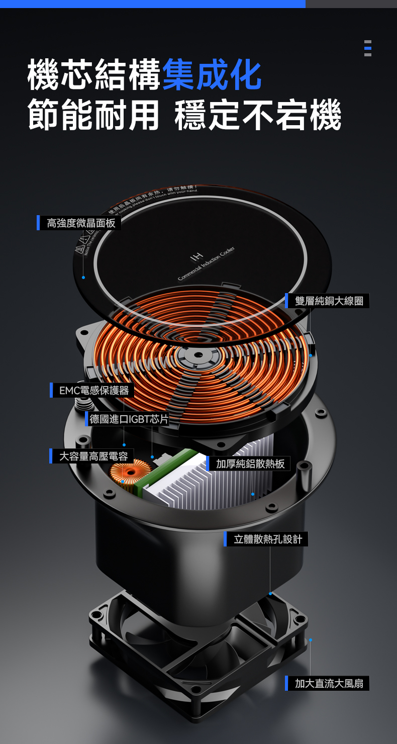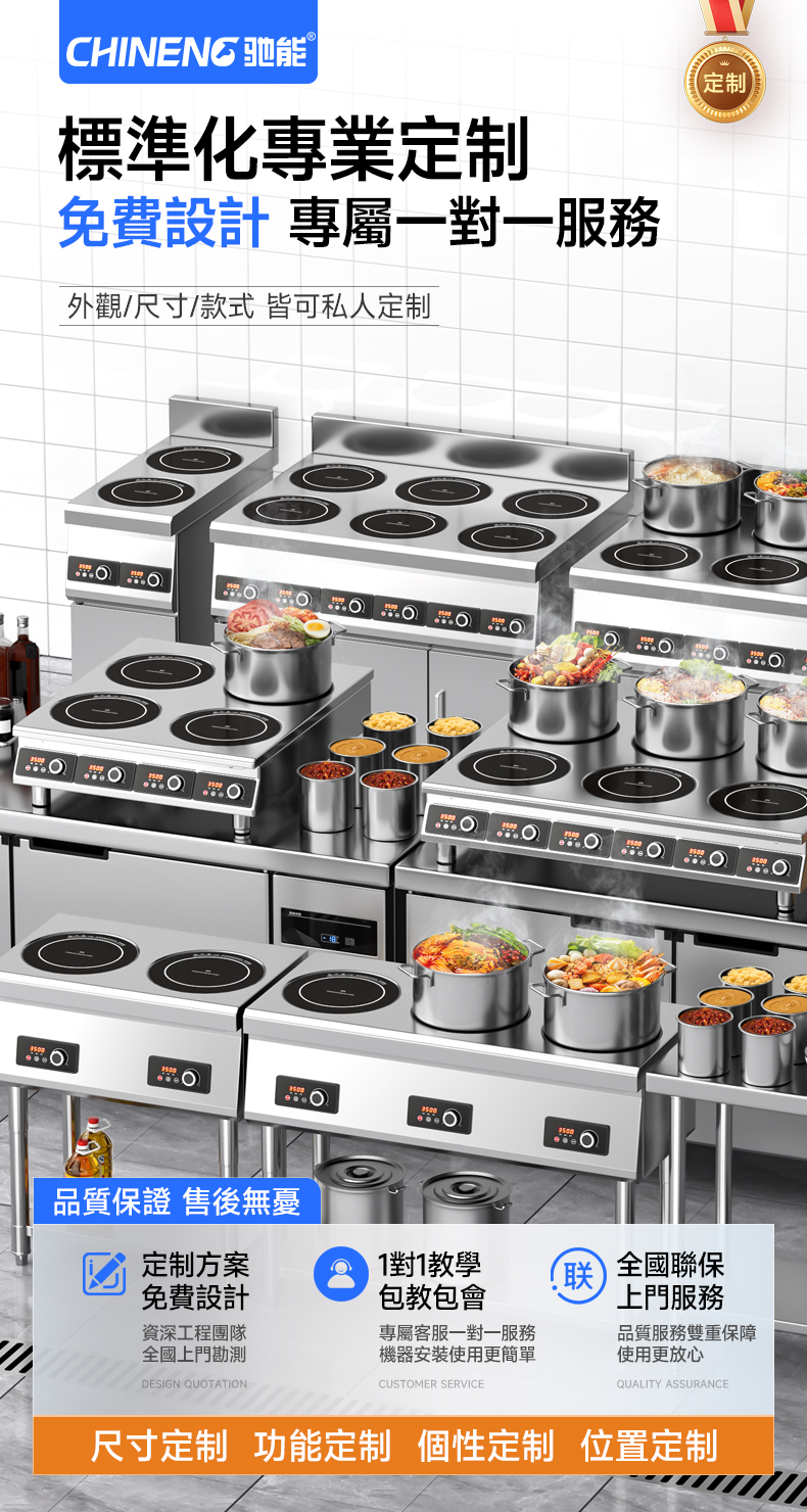 穩定可靠:馳能立式電磁煲仔爐採用進口機芯和純銅線圈,保證了設備的穩定性和耐用性。同時,其密封設計有效防止油煙外泄,延長了設備的使用壽命。