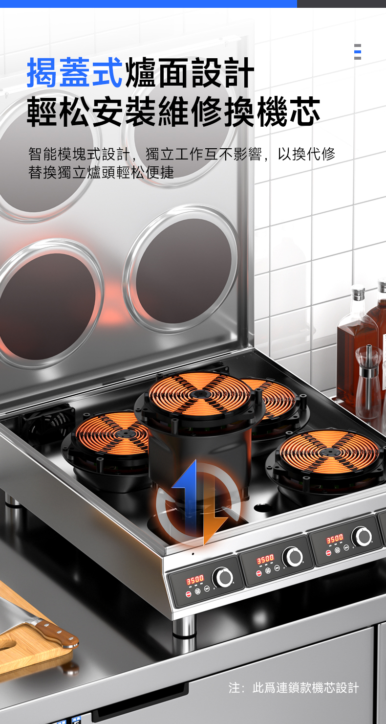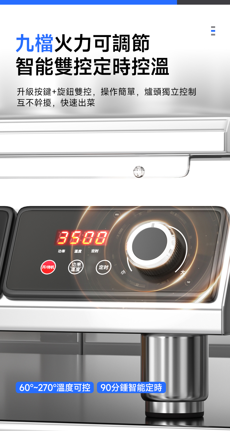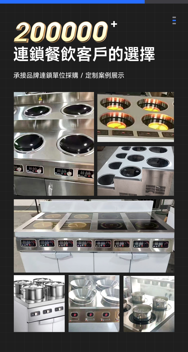 選擇多樣:有多種功率可供選擇,常見的如四頭、六頭、八頭的立式電磁煲仔爐,每個爐頭的功率一般在 2.5kW - 3.5kW 左右,可根據實際使用需求和廚房的電力負荷進行選擇