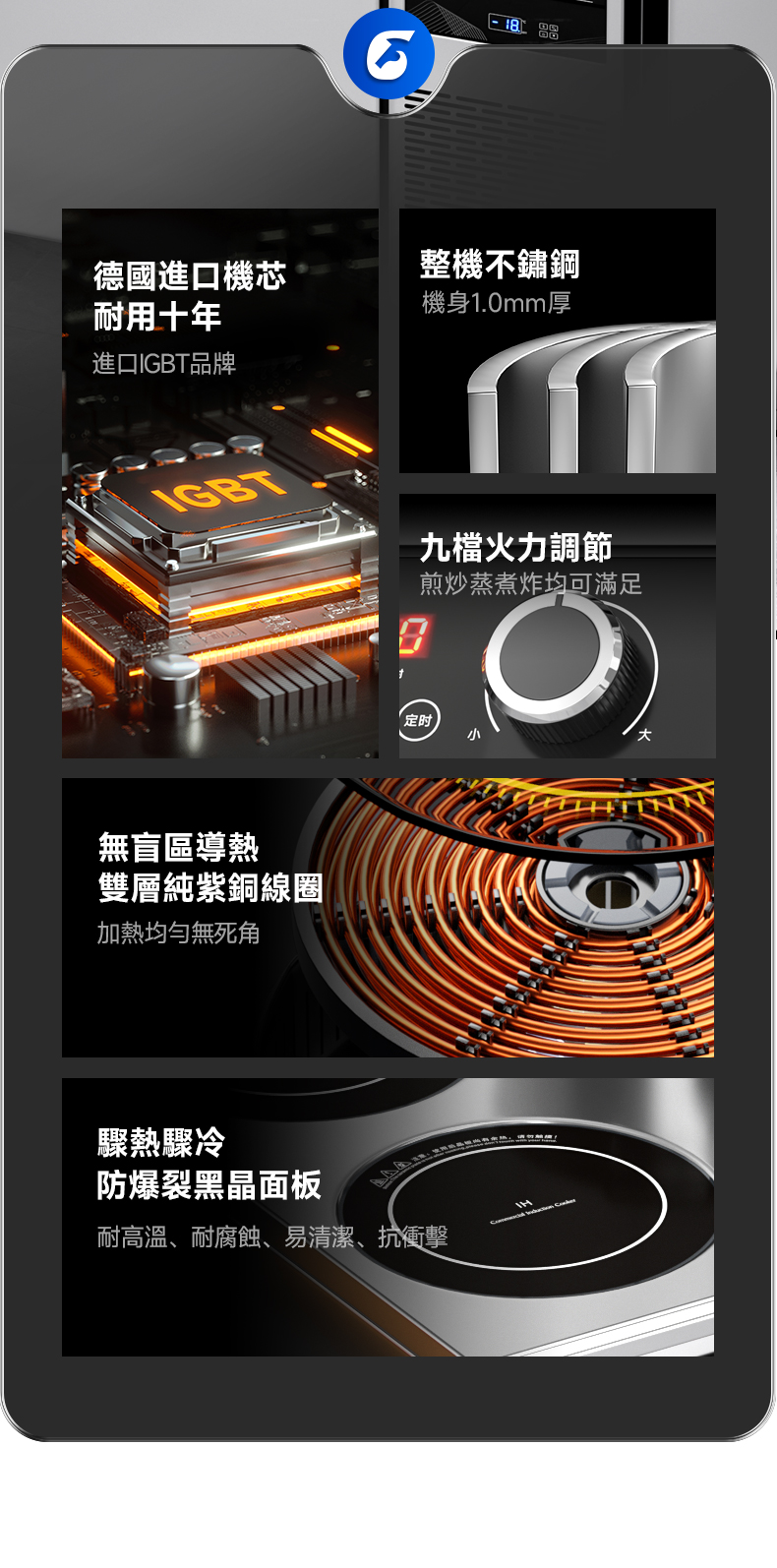 智能控制:馳能立式電磁煲仔爐配備了智能控制系統,可以實現自動調溫、定時提醒等功能。用戶可以根據需要設置烹飪時間和溫度,方便掌握火候和時間,確保烹飪出的食物口感更佳。