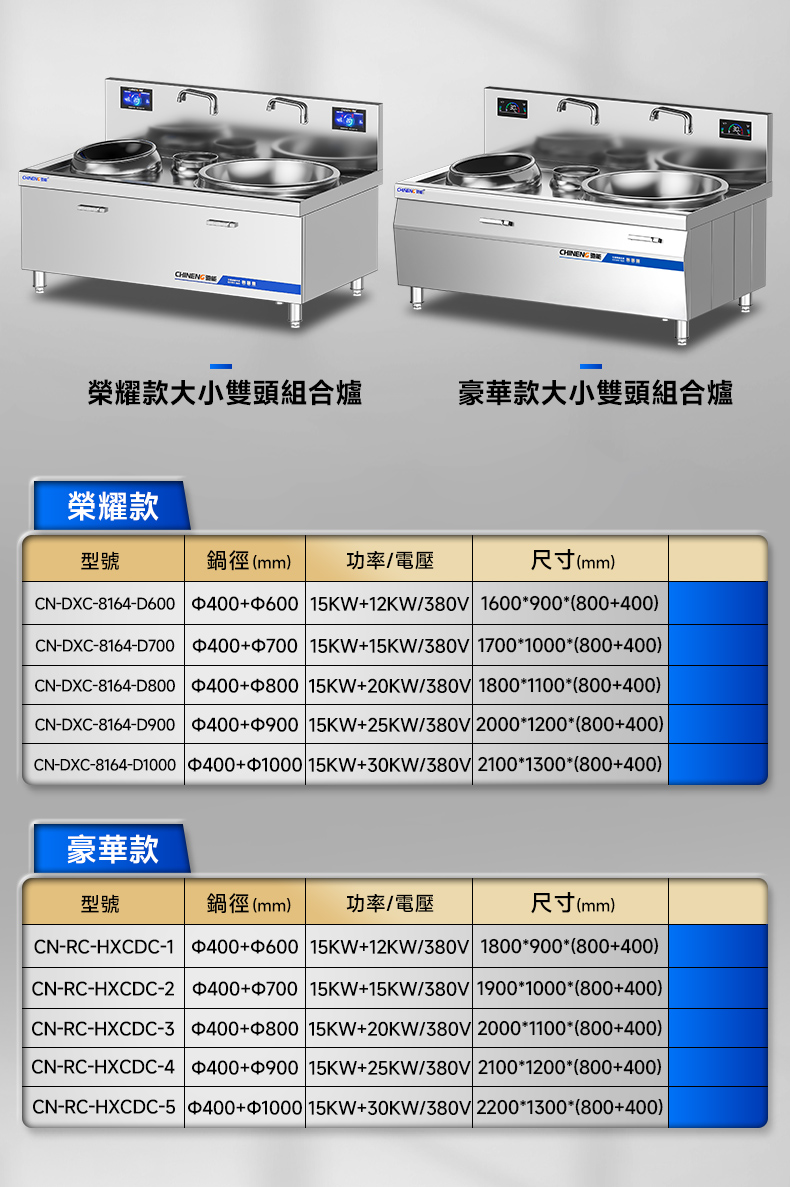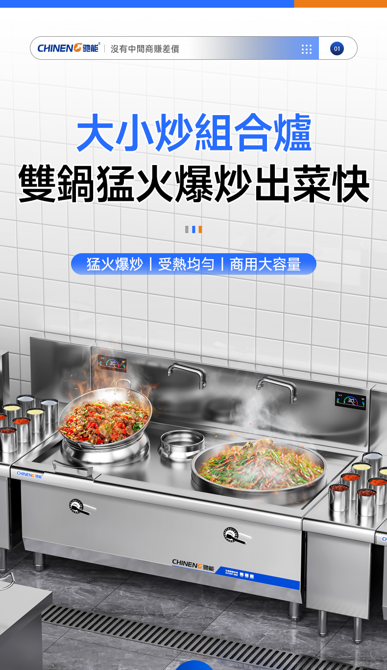 馳能商用電磁大小炒組合爐介紹