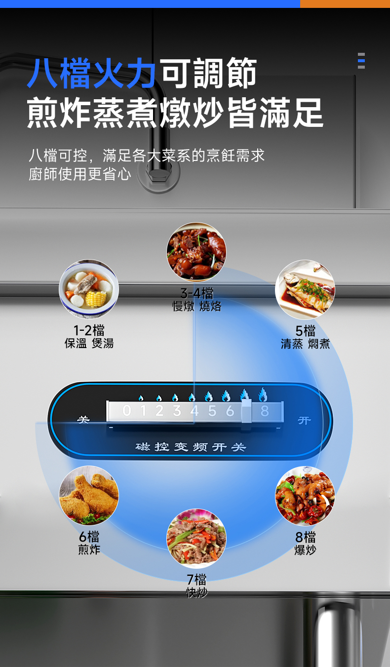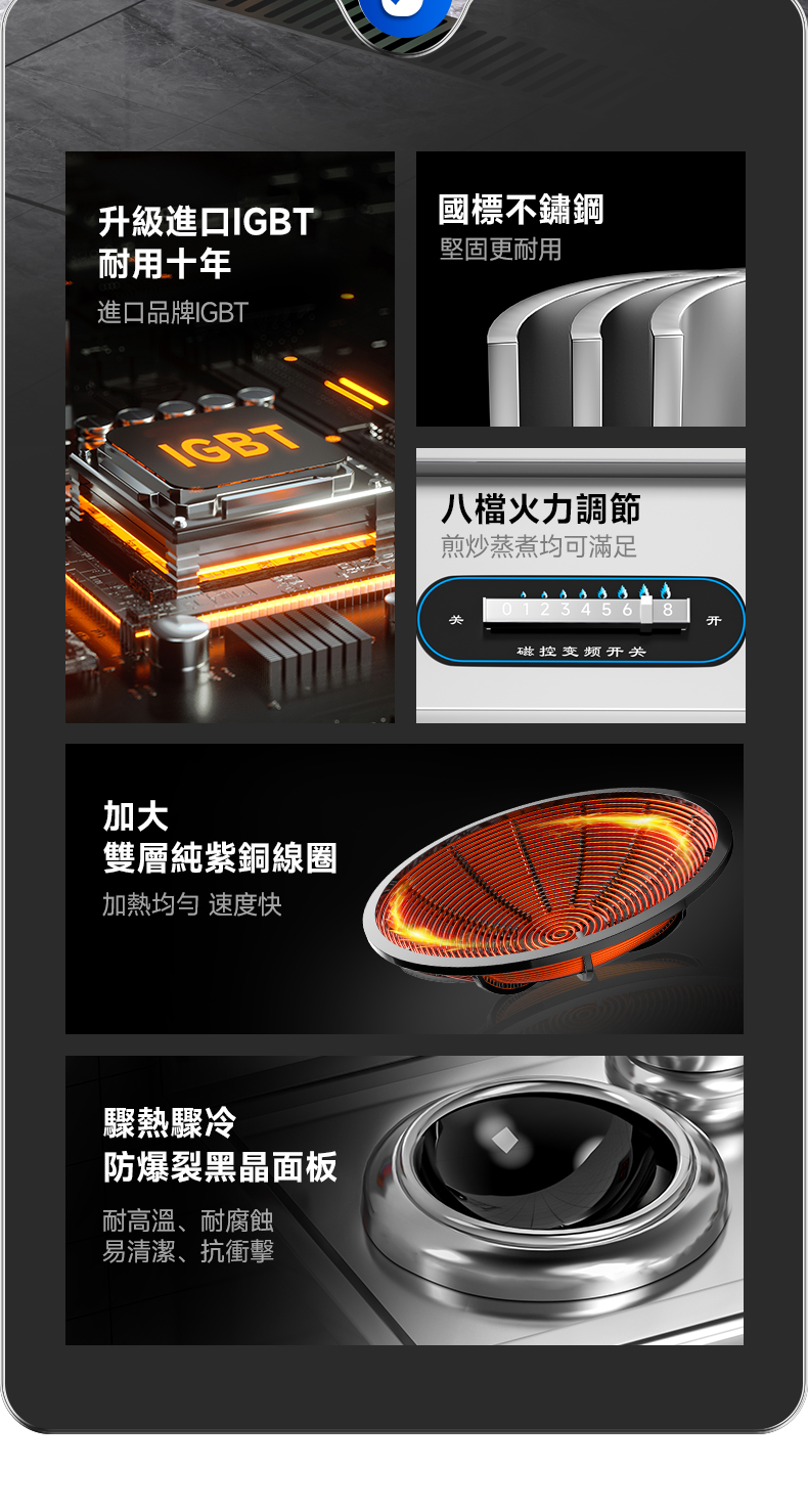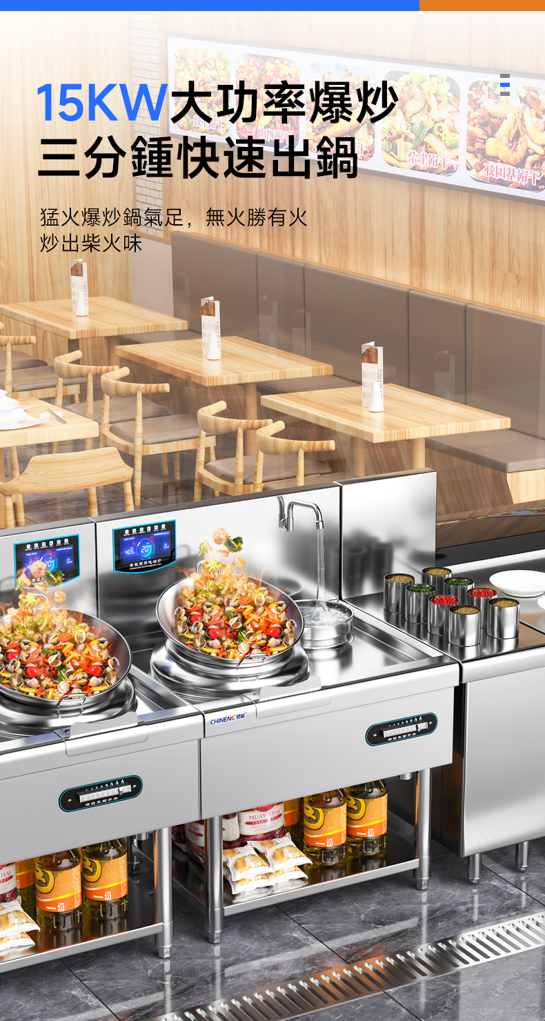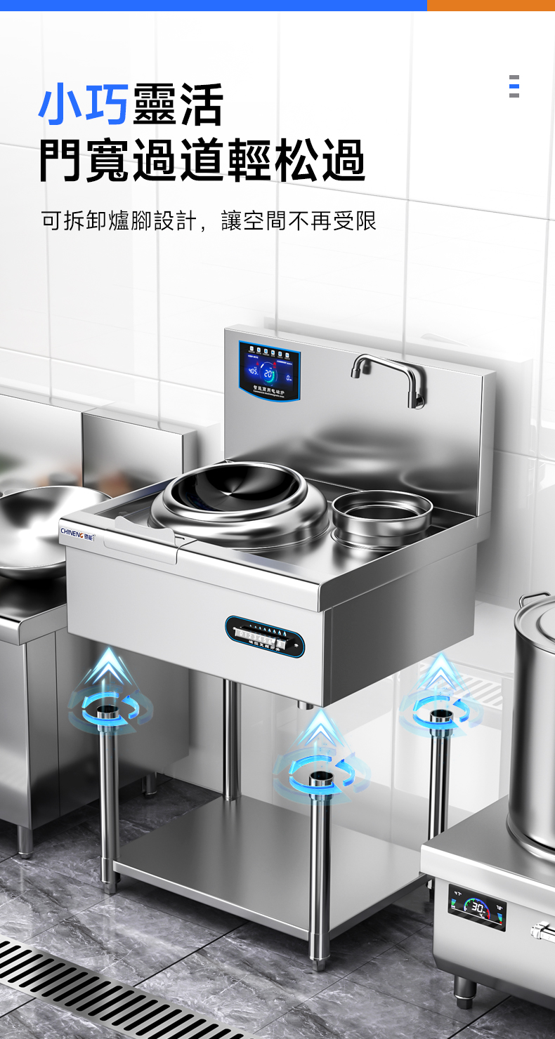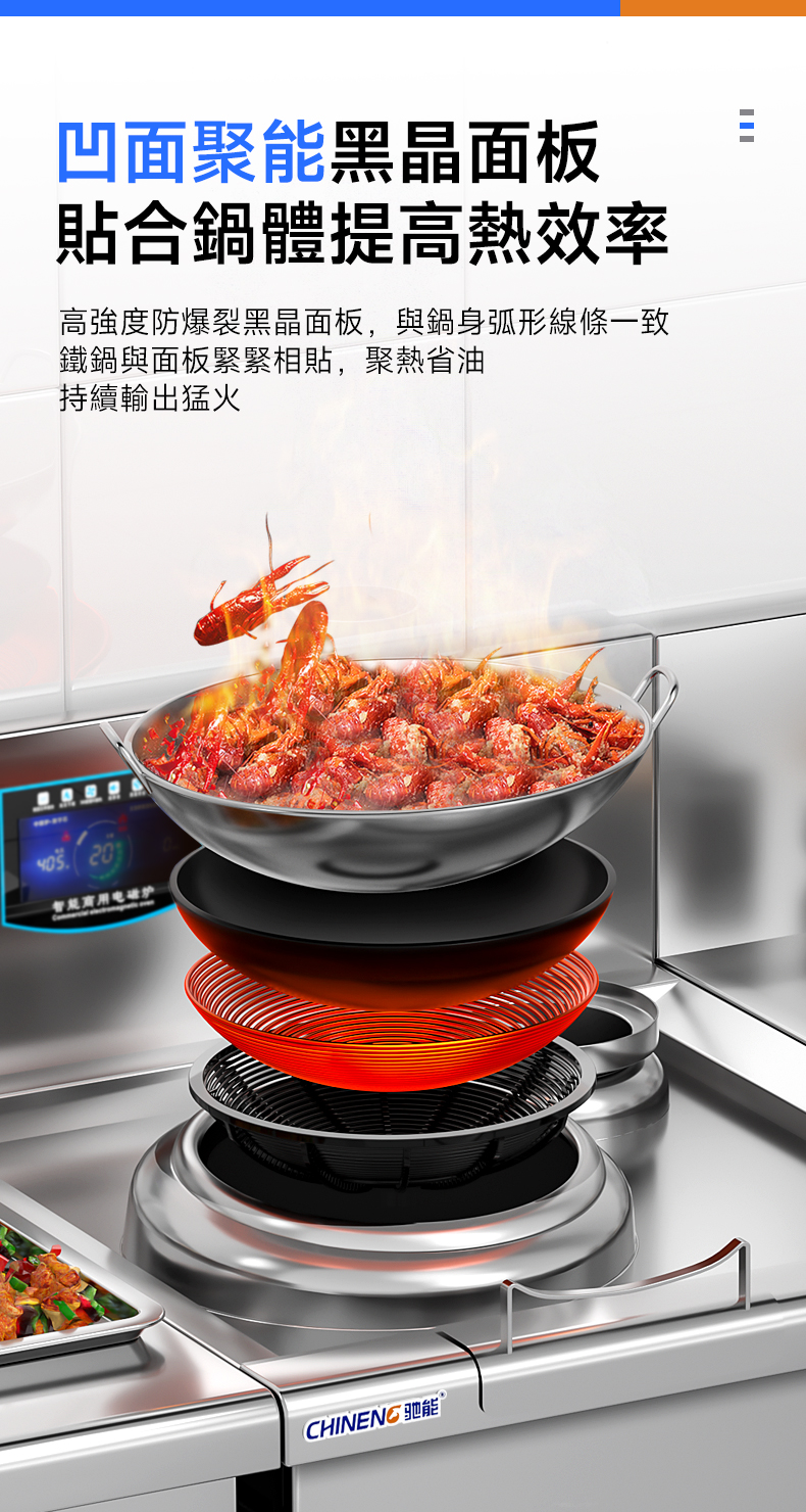 高效快速:採用電磁感應加熱原理,能在短時間內使鍋具迅速發熱,加熱速度遠快於傳統的燃氣爐竈。例如,在餐廳營業高峯時段,可以快速完成菜品的炒制,提高出菜效率,滿足顧客的需求。