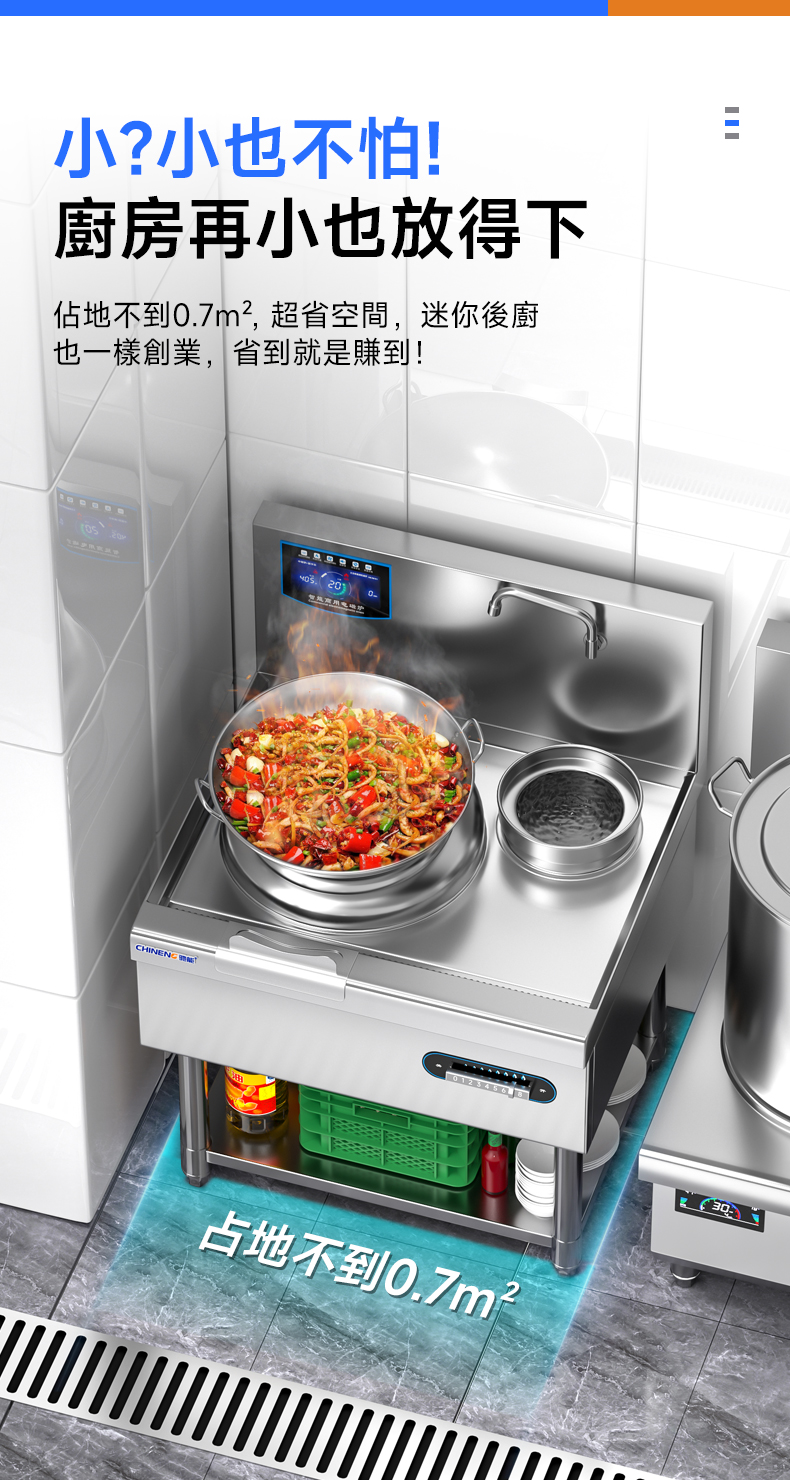 鍋具適配性:配備適合電磁加熱的專用鍋具,鍋具與爐竈的貼合度高,能夠充分利用電磁能量,提高加熱效率。並且,不同型號的小炒爐可以適配不同尺寸的鍋具,滿足多樣化的烹飪需求。